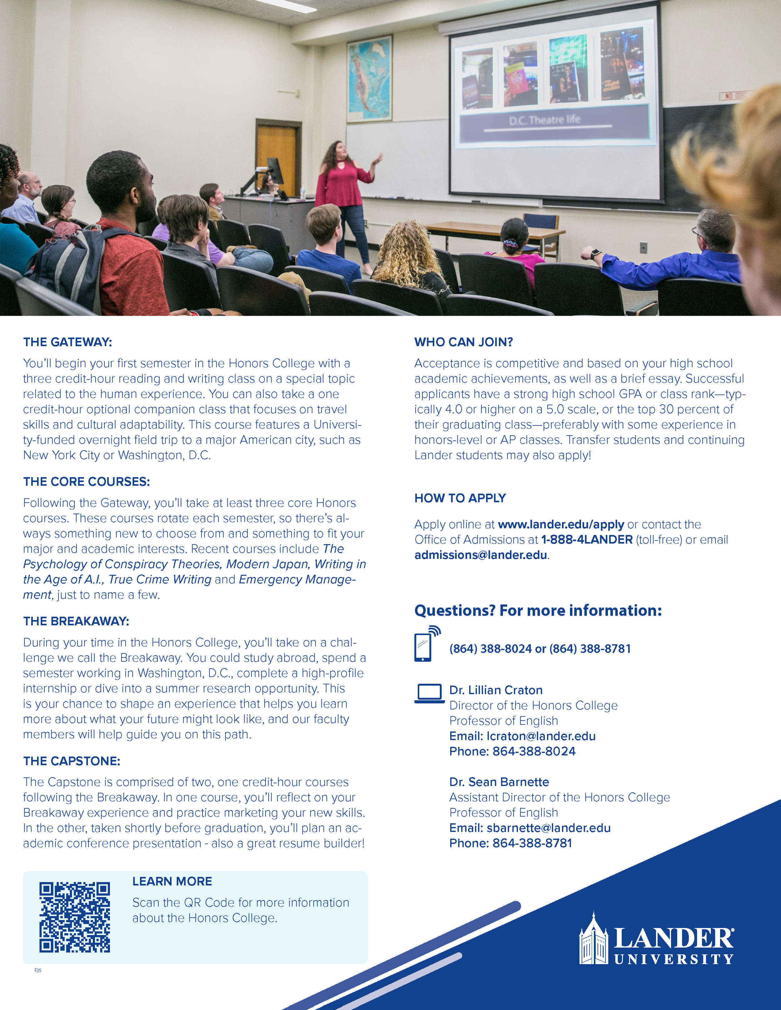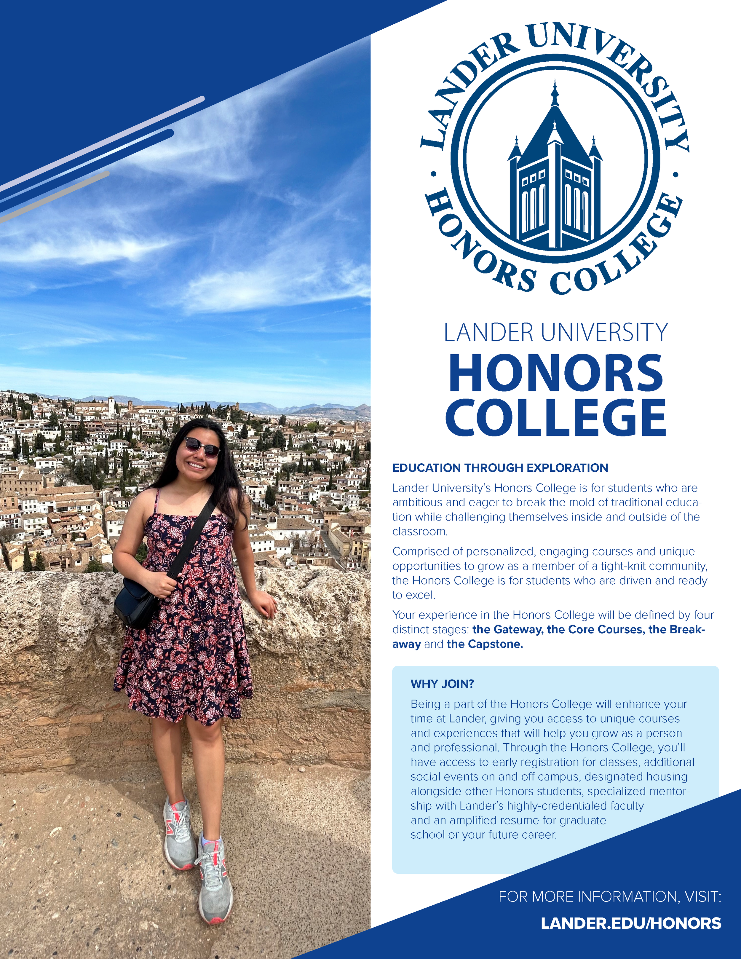 Follow us at Facebook.com/LUHonorsCollege or visit our official page at Lander.edu/honors